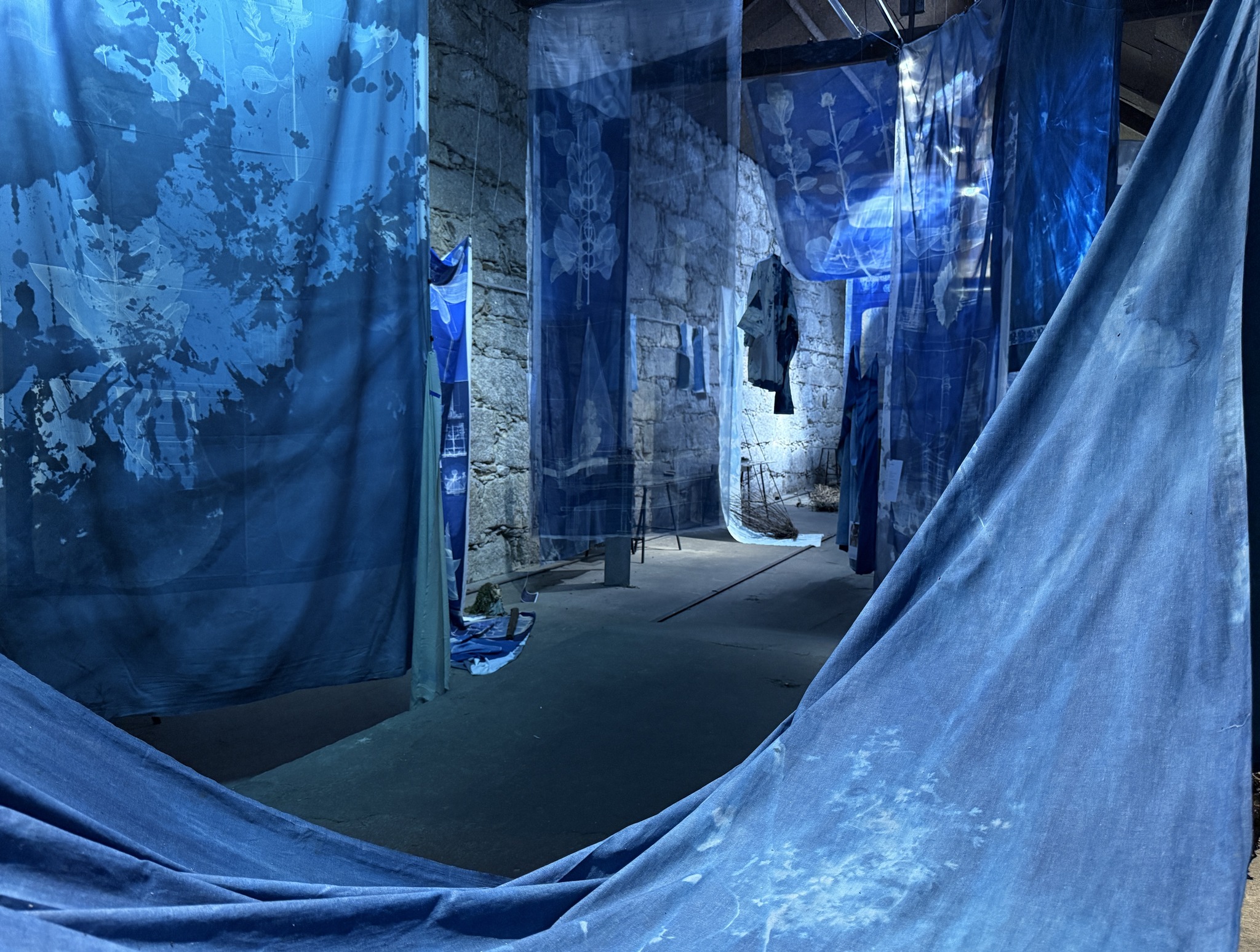 Recolhi plantas das ruínas de antigas fábricas têxteis e dos terrenos em redor da antiga central elétrica para criar um herbário do antropoceno, utilizando processos fotográficos solares, como cianotipias e fitogramas. (...) Em colaboração com agentes algorítmicos, gerei bio-imagens que funcionam como uma extensão especulativa desta pesquisa. As informações recolhidas foram codificadas em prompts para gerar novas imagens, ampliando a leitura do território através de processos de inteligência artificial. Estas imagens serviram também como base para o desenvolvimento de novos têxteis, produzidos em fábricas de impressão digital, criando uma nova camada de materialidade e circulação para os vestígios de Campanhã.